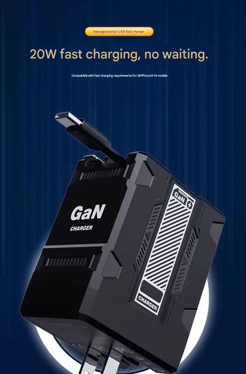Gallium nitride (GaN) charger, PD fast charging phone charger with dual retractable cable, compatible with Apple and Android devices.