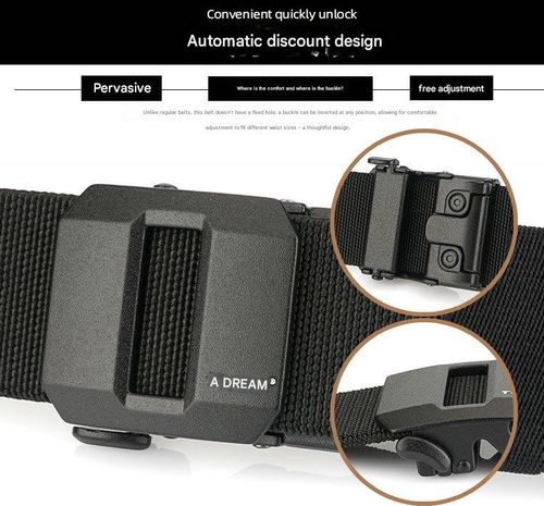 Men's high-elastic nylon automatic buckle tactical belt, casual canvas leather belt for young and middle-aged men.